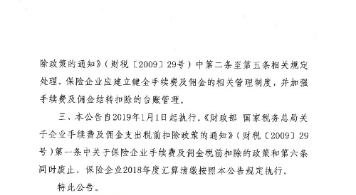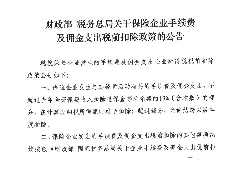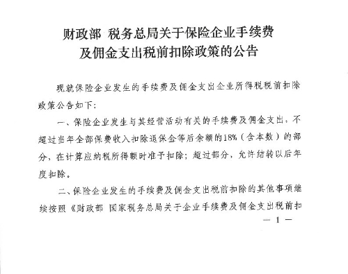 关于保险企业手续费及佣金支出税前扣除政策的公告