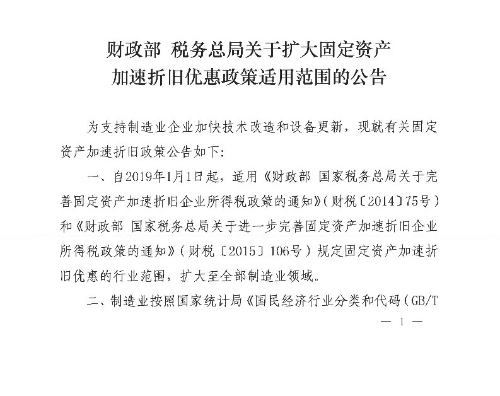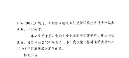 关于扩大固定资产加速折旧优惠政策适用范围的公告