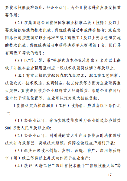 (一)企业范围。经四川省人力资源社会保障部门备案或拟备案开展职业技能等级认定的企业。优先在全省“5+1”现代工业、“10+3”现代农业、“4+6”现代服务业和经济社会发展急需、紧缺行业(领域)的大型企业、龙头企业实施。
