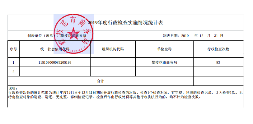 2019年度行政检查实施情况统计表