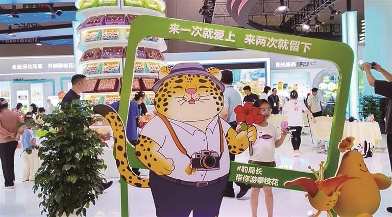攀枝花综合展区位于中国西部博览城10号馆内,展馆面积1000平方米。“豹局长”是展区的“门面担当”,“攀芒芒”则是展区的“吉祥娃娃”。到这里,可先和憨态可掬的“豹局长”拍照打卡,再开启吃吃吃的甜蜜之旅。