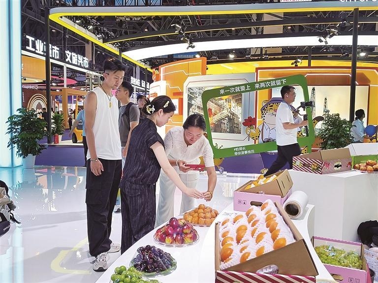 在攀枝花综合展区,除了有水果墙,各类果干、土特产品琳琅满目,充分展现着“暖暖花城”的“软实力”。