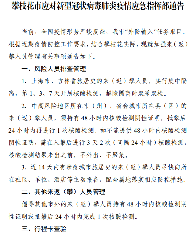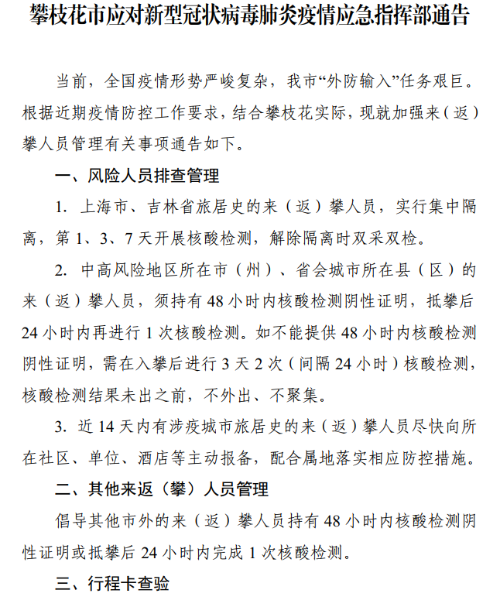 攀枝花市应对新型冠状病毒肺炎疫情应急指挥部通告